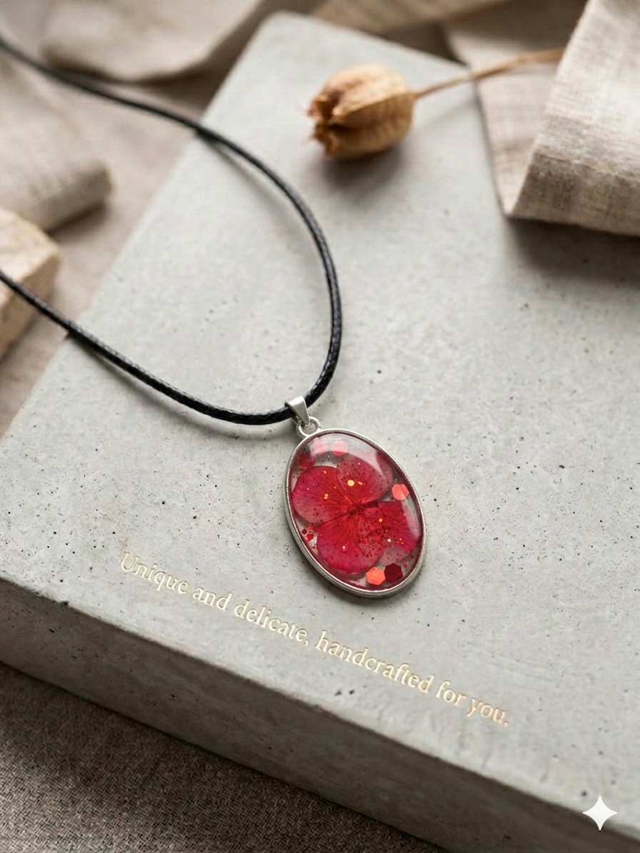 Portez un brin de poésie avec ce collier unique. Ces véritables fleurs minutieusement séchées et figées dans la résine, semblent capturer un instant de pur bonheur. Entouré d'un délicat cadre argenté, ce pendentif rond est une ode à la beauté de la nature. Il est le cadeau idéal pour celles qui aiment la discrétion et l'originalité. Un bijou qui raconte une histoire.